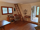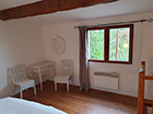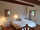 vom Wohnzimmer aus "Hühnertreppe" ins grosse Schlafzimnmer im 1. Stock mit grossem Bett (Einzelmatratzen), Tisch.