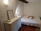 kleines Schlafzimmer mit 2 Bettstellen, eine grosse Truhe mit genügend Bettwäsche.